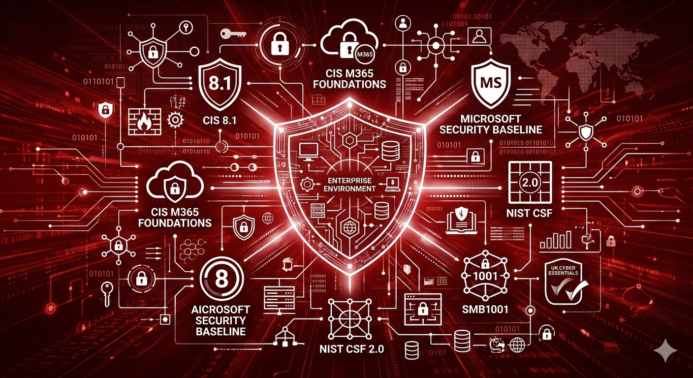 I align security architectures with leading standards and frameworks including CIS 8.1, CIS Microsoft 365 Foundations Benchmark, ACSC Essential Eight, Microsoft Security Baseline, NIST CSF 2.0, SMB1001, and UK Cyber Essentials to ensure strong compliance, governance, and cyber resilience across enterprise environments.